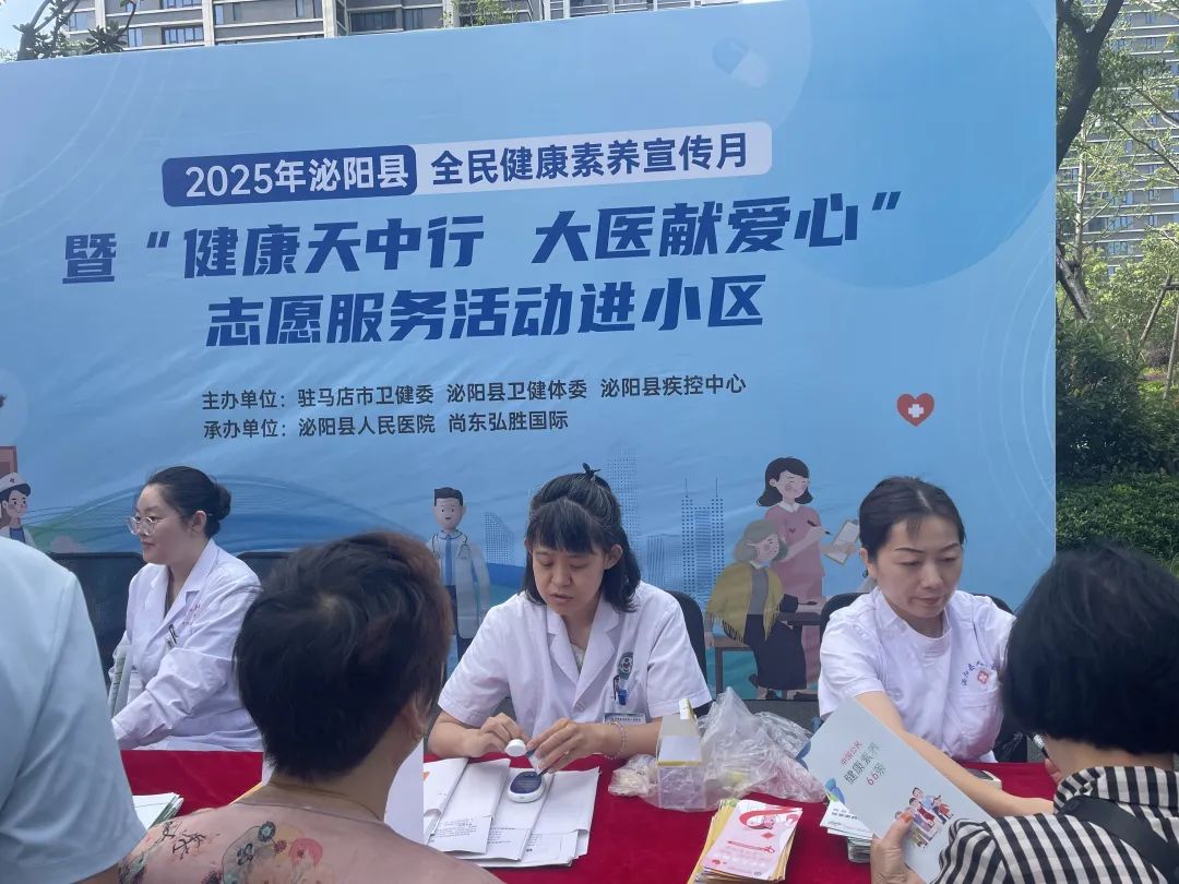 2025 年 6 月,正值第二个全民健康素养宣传月。6 月 15 日上午,泌阳县卫健委积极响应国家卫生健康委工作部署,精心组织县人民医院、县疾控中心深入尚东・弘胜国际小区,开展了一场别开生面的全民健康素养月宣传及健康促进活动,致力于将健康知识与优质医疗服务精准送到居民家门口。