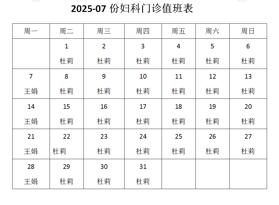 7份妇科门诊值班表