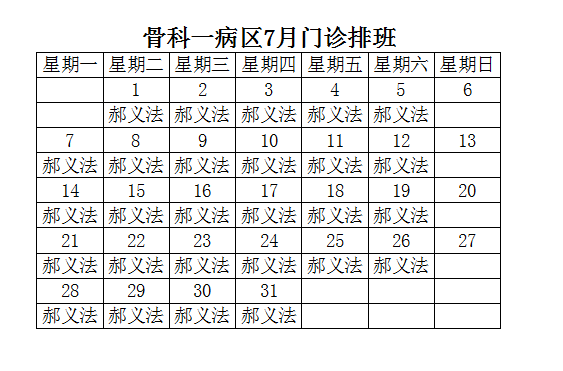 骨科一病区7月门诊排班