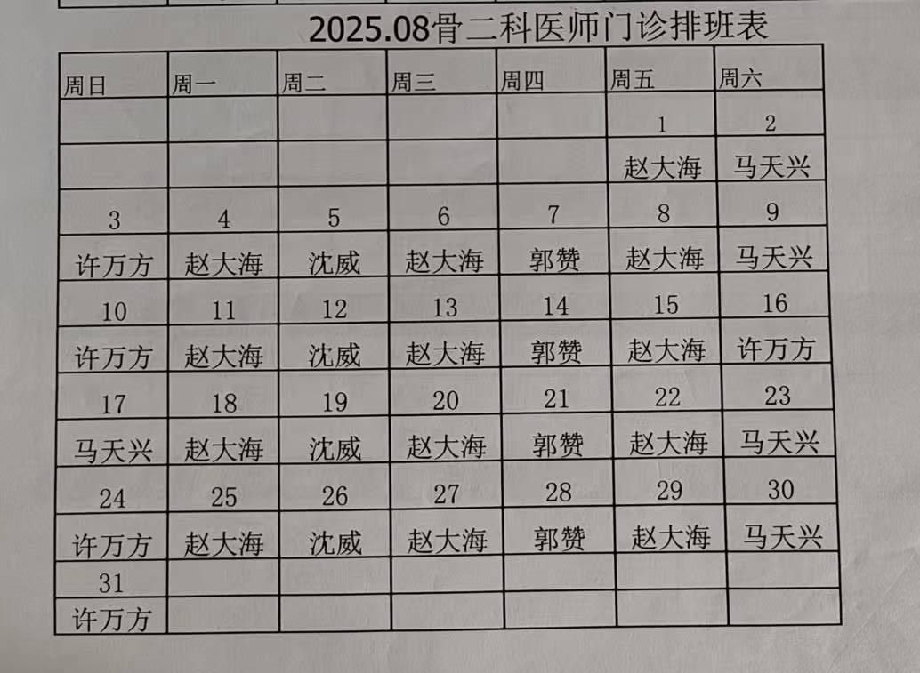 骨二科8月门诊排班