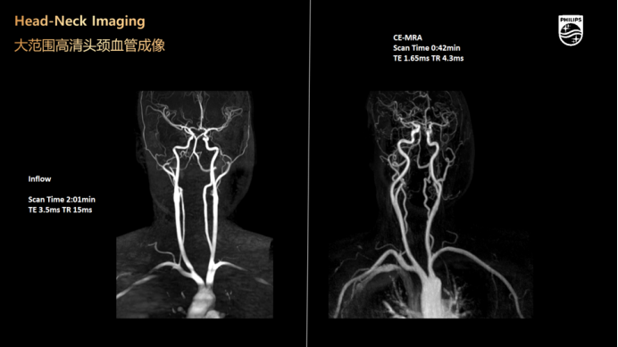 3.0磁共振全新推出的不打药头颈部动脉、肾动脉、冠状动脉成像技术可以安全无创的完成动脉成像,为临床提供准确的诊断信息。对于孕妇、儿童、造影剂敏感的患者来说,这种方式更安全,应用范围更广、检查时间更短。