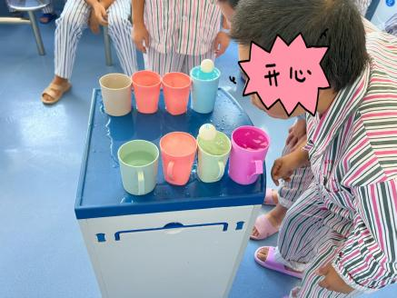 “杯”水传情,快乐“乒”搏:桌上依次摆放加满水的水杯,患者需要平稳地将乒乓球从第一个杯子吹到最后一个。小小的挑战不仅锻炼了肺活量,更让大家在“小心吹,别洒啦”的互相提醒中,笑作一团。