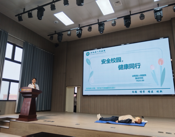 随后,护理团队马不停蹄来到泌阳县第七中学,为学校教师带来了一场干货满满的应急知识科普盛宴。科普活动从PPT讲解开始,涵盖校园常见意外急救处理,如学生运动扭伤、磕碰伤的紧急处理;聚焦青少年生理、心理健康知识普及,引导教师关注学生成长关键期的身心变化;针对秋季特点,着重介绍流感、水痘等常见传染病的预防与处理措施。在海姆立克急救法理论培训环节,通过动画演示、步骤拆解,让老师们清晰理解这一关键急救技能的原理与操作要点。