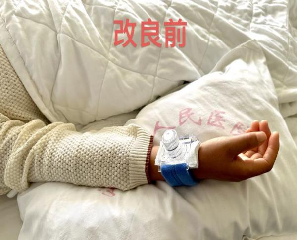 经桡动脉冠脉介入术后,患者需长时间保持术侧上肢伸直抬高状态,传统的软枕易滑脱,既影响患者舒适也存在安全隐患。为此,心血管内科五病区护理团队自主研发了一款专用抬高垫,它由有弹性的记忆棉做成,中间一个弧形的凹槽,能把手臂稳稳托住并保持最合适的抬高角度。这一设计不仅有效预防穿刺点出血与血肿,提升患者的舒适度和安全感,也减轻护士频繁调整体位的工作负担,真正体现了以患者为中心的优质护理服务理念。