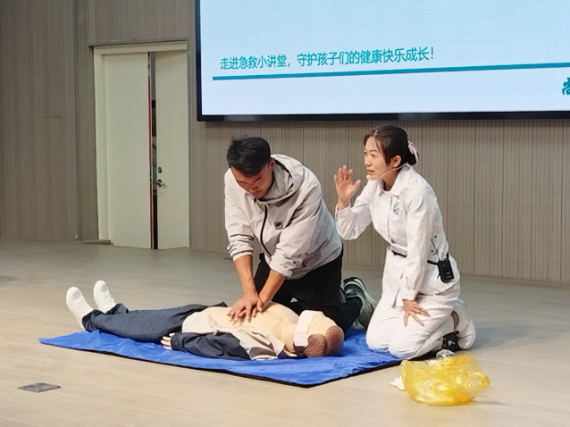 理论学习后,进入紧张刺激的实操环节。护理人员带来专业急救模拟道具,现场演示海姆立克急救法和心肺复苏术的标准操作流程,老师们热情高涨,纷纷主动上台练习。护理团队成员一对一指导,从按压位置、力度、频率,到人工呼吸的角度、吹气时长等细节,耐心纠正老师们的每一个动作偏差。现场互动热烈,老师们积极提问,在轻松活跃的氛围中,将这些急救技能牢牢掌握,为守护校园师生安全增添了一份有力保障 。