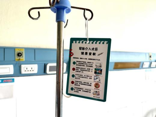 为让健康宣教“看得见、记得牢”,科室推出“可视化健康宣教牌”,用小牌子解决大问题。针对低分子肝素钙注射后、冠脉介入术后护理等关键环节,以清晰图文取代易忘的口头交代和易丢的纸张,将关键信息持续呈现在患者眼前。不仅有效降低了并发症风险,减轻了护士重复宣教的负担,更保障了患者的治疗安全与康复质量。