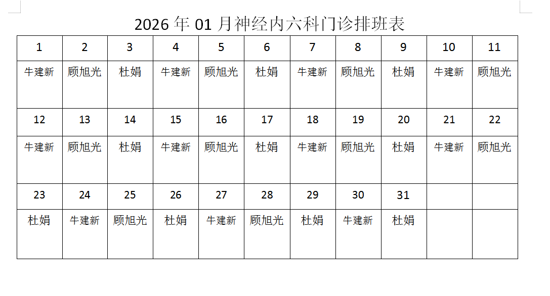 神经内六科2026年1月门诊排班表