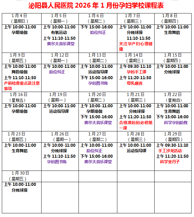3.请各位孕妈妈合理安排时间,尽量不要迟到哦!孕妈妈们不要看错时间,课表如有改变会及时通知大家